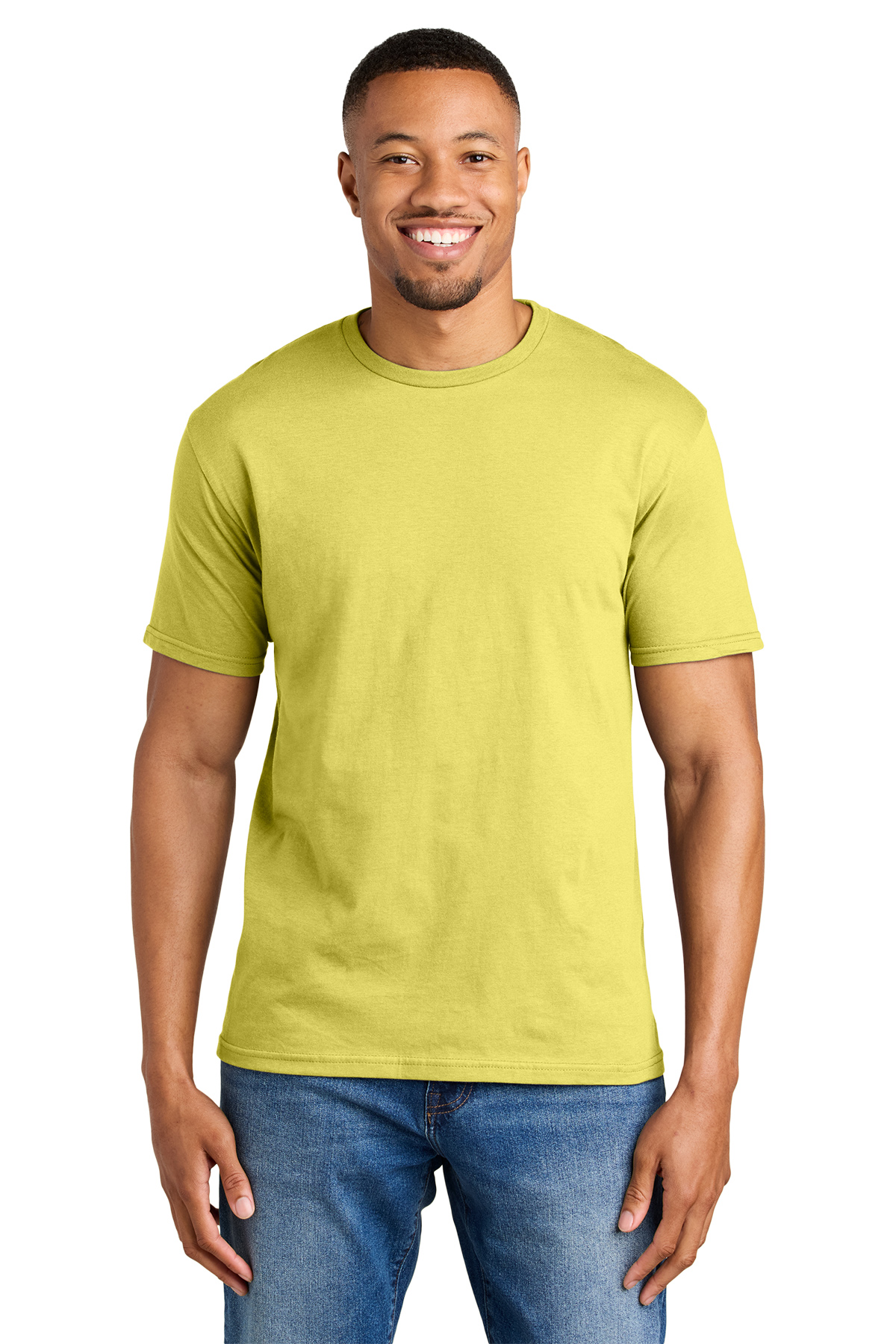 - Tearaway label Junior contoured silhouette with side seam Feminine double-needle 1/2" rib knit seamless collar