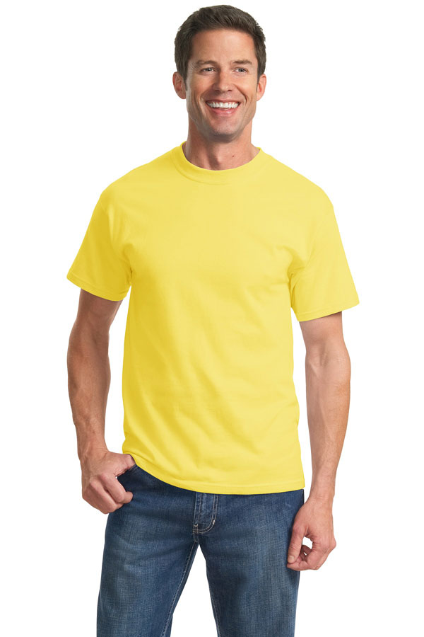 6.1-ounce 100% soft spun cotton98/2 cotton/poly (Ash)90/10 cotton/poly (Athletic Heather) 50/50 cotton/poly (Dark Heather Grey)